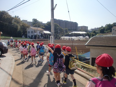 気持ちよい日差しの元、車に気をつけながら農園を目指します
