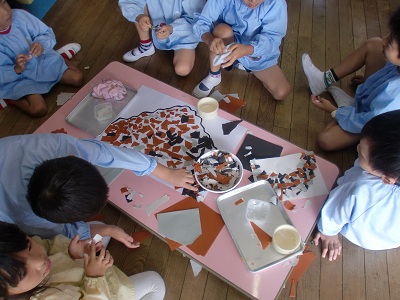 みんなで作ったものを全て合わせて一つの作品が出来上がります。