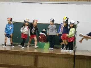 年長組は一人ひとりセリフがあります。もらった台本をおうちでも見て練習しているのでしょうか。先生に教えてもらわなくてもマイクの所まで行き、セリフを上手に言えるお子さんもいました。
