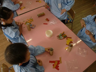その切った画用紙を、今日はトイレットペーパーの芯に貼り付けます。