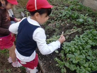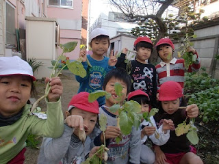 昨日、食育講座で大根に親しんだ年長組ですが、野菜を育てることの大変さ、農家の人たちに対する感謝、普段はあまり見ない土の中で育つ野菜の葉っぱを知る・・・