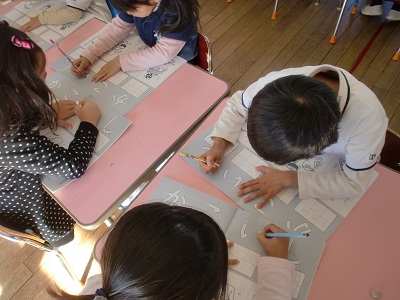 文字に興味を持ちながら、集中して取り組むという経験をこれからも取り入れてゆき、小学校に繋げたいと思っています。