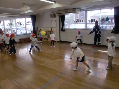 今日は、年中組も年長組も「ばくだんドッジボール大会」でした。