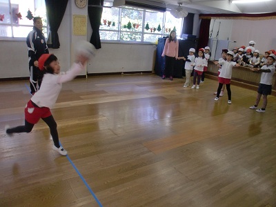 年長組は、1学期にも何度かボールを投げる・取るという練習をしました。