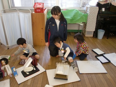 ほしぐみは、友達と一緒に制作に取り組んでいます。