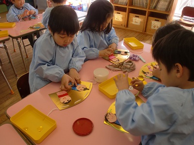 さくらぐみは、昨日今日で自分のひな人形作りをしていました。