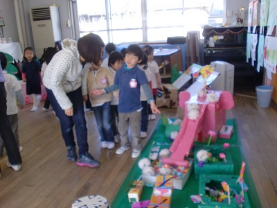 子ども達が工夫しながら作った作品を明日以降ご自宅に持ち帰ります。