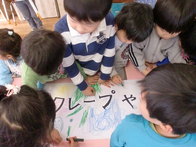 たんぽぽぐみは果物やさん、さくらぐみはクレープやさん。