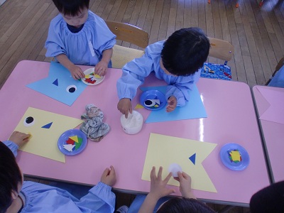 ひよこぐみは、幼稚園で初めて「のり」を使った制作を行ないました。