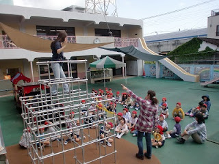 年長組では、おはよう体操をした後に、改めて園庭の遊具の遊び方の確認をしていました。幼稚園に慣れている年長組ですが、楽しく安全に遊ぶためにも自分達でも意識を持って過ごしてもらいたいと思っています。