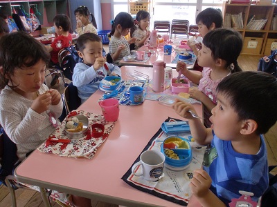 自分で準備をし、大好きなお母さんが作ってくれたお弁当を食べました。