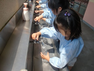 子ども達は、出来上がったもの(自分で一番好きな色が出来たら、そこで終了にしました)を似ているもの同士集めてジュース屋さんを行なっていました。