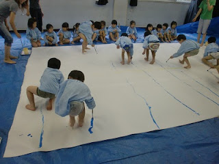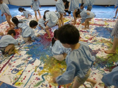今回も、絵の具がきちんと落としきれていないお子さんも沢山います。