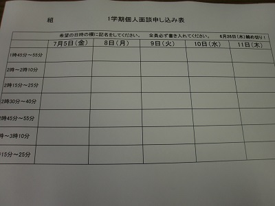 個人面談は、全員させていただくものですので、お忘れの無い様記名をしてください。
