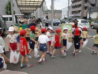 みんなでちょっとずつ持ち、幼稚園に戻ってきました。
