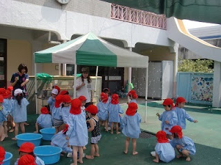 しゃぼんだまの後は水遊び。気持ち良さそうでしたよ。