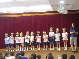 今日は、8月のお誕生会を行ないました。先生に名前を呼んでもらい、前に立った8月生まれのお友達は、とっても嬉しそう。