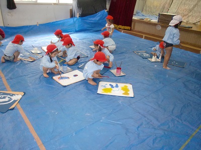 1学期に何度か絵の具あそびを経験した子ども達。絵の具が好きになってくれたようです。