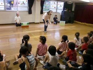 今日は、これまで年長組が楽しくお話を聞き、歌ってきた歌に踊りがあるということで、見せてもらう日。