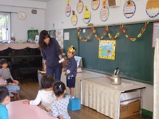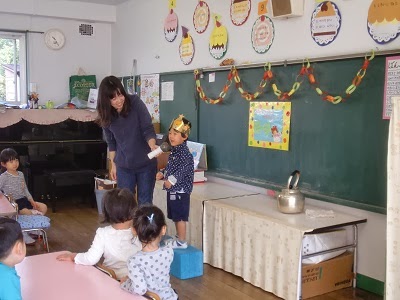 幼稚園のみんなから「お誕生日おめでとう」とお祝いしてもらったあとは、毎回楽しみにしている「たかぎ劇場」です。