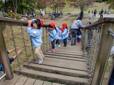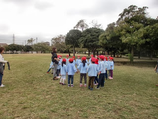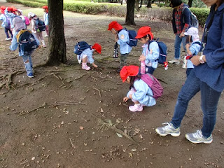 午前中は、広い原っぱで遊びました。どんぐりも沢山落ちていて、おみやげに持ち帰った子もいました。