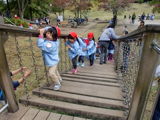 今日は、秋の遠足。岸根公園に行きました。昨日の雨でぬかるんでいるところもありました。
