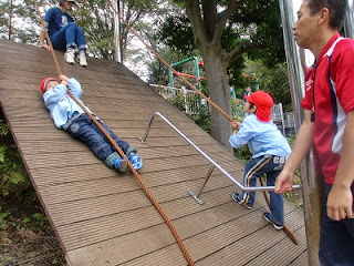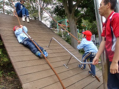 午後は、アスレチックで遊びました。朝濡れていた遊具も乾いて、みんな元気に遊んでいました。