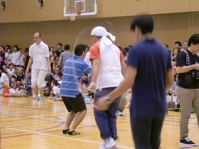 大人のなわとび大会では、最後まで引っかからずに跳んだ3名の方には