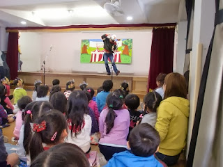 色々な動物が、自分の得意なことを披露したり、マイクでお話をしたりする、先生オリジナルのお話です。