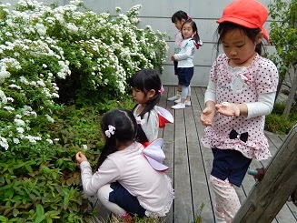 年少組の「おひさま」の子も、テラスでお弁当を食べましたよ。