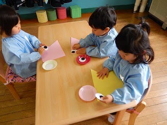 今日は、年少組が「のり」の使い方を教えてもらいます。