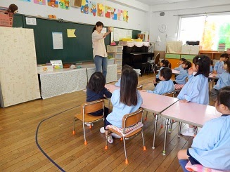年少組さんを見てみると、先生の話を真剣に聞く子ども達。