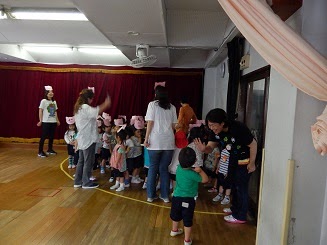 3クラスで遊戯室に集まり、「おひっこしゲーム」