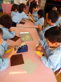 高木幼稚園では、先日から品物を作り始めましたが、今日は、年中組さんも一緒に品物を作りました。