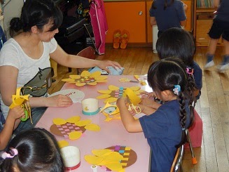 細い画用紙を組み合わせて、素敵なひまわりが出来ていました。
