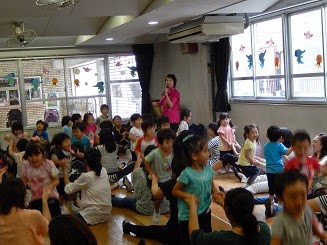 年少組の保護者会の時間内に行いましたが、リズム感・バランス感覚を身に付けていかれるような動きを親子で一緒に触れ合いながら体験しました。