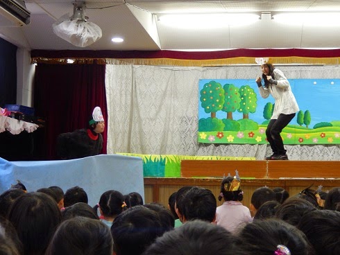 とても有名なお話なので、知っている子も沢山いましたが、楽しく(中には「こわ~い」と言っている子もいましたが、)見ていました。