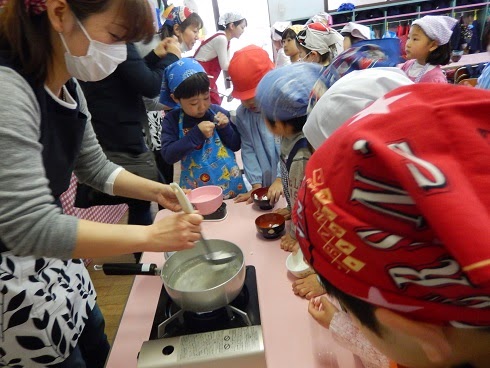 お手伝いできていただいたお母さん先生に、お湯で湯がいてもらいました。