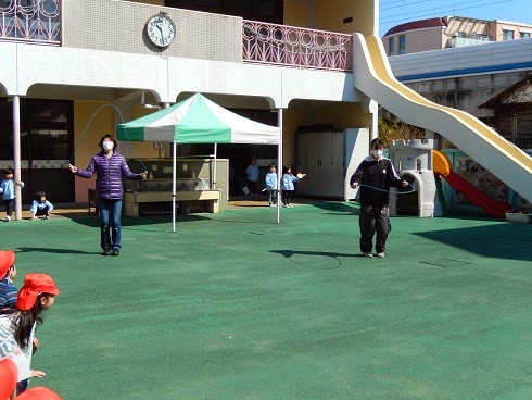 突然のことでしたが、子ども達はとても盛り上がり、先生たちも一生懸命跳んでいました。
