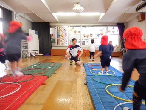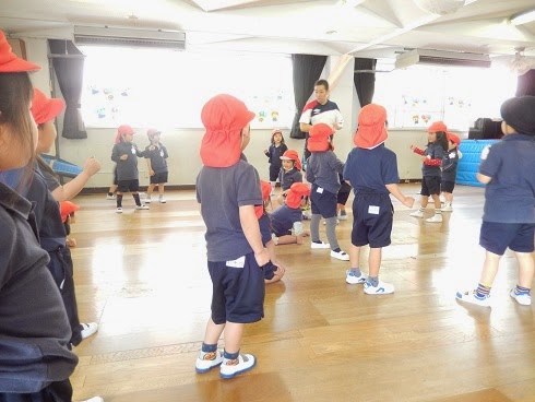 両足跳びに挑戦。両足そろえて跳ぶという経験があまりないという子もいたようですが、少しずつ経験していくことで、縄跳びの活動にもつながると思います。是非挑戦してみてくださいね。