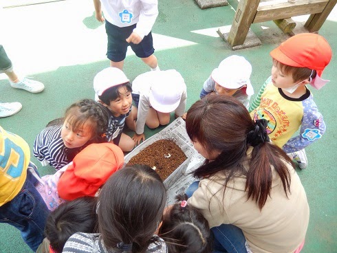 その成虫から子どもが生まれ、幼稚園玄関にあるケースの中で育てていました。