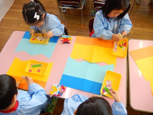たんぽぽぐみは「はさみ」「のり」を使って、あるものを作っていました。