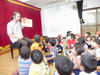 一緒に昼食を食べ、園庭で少し遊んだあとは、歌&読み聞かせ の時間です。