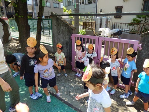 先生の話を聞き、アンパンマンになってバイキンマンをやっつけよう!!と張りきっていました。