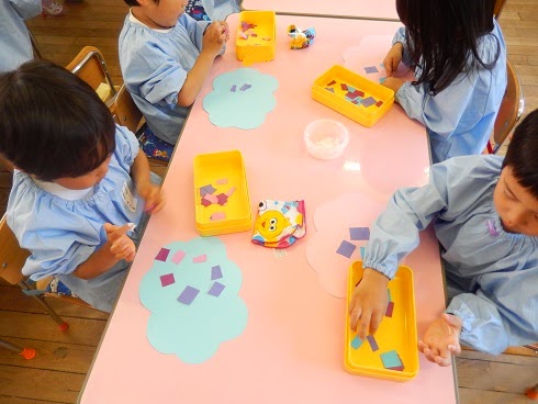 今回の制作では、はさみやのりを使いました。のりはこいのぼりに続いて2回目。約束も大分身についてきているようです。