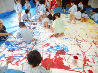 昨日たんぽぽぐみが絵の具あそびをしました。