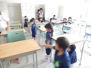 教室の椅子や机も、幼稚園の子用のとは全然大きさが違います。