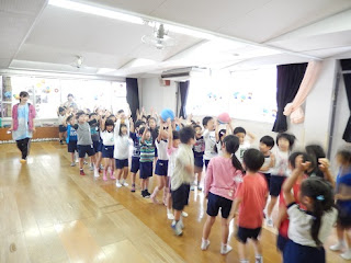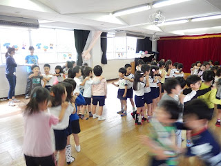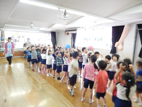 話し合いの後は、聖保育園のみんなと一緒に「じゃんけん列車」をしました。