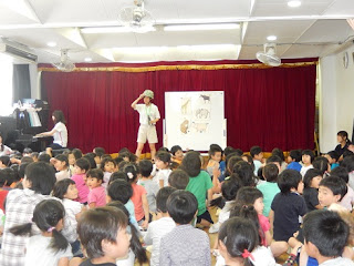 世界中の動物園を回っている、でも金沢動物園には行ったことがない「ジャミーさん」が幼稚園にやってきて、バスでの過ごし方、みんなで歩いて回るときの約束などを教えてくれました。
