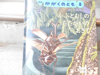 今日は、成虫になったら子ども達と見ようとおもっていた、かがくのとも「かぶとむしの たたかいの おきて」をゆきぐみで読みました。